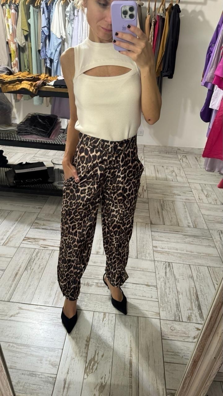 Pantalón cigarette a la cintura, ancho en piernas y afinado en tobillos . El pantalón termina en cada pierna con un botón que podés usarlo abrochado para darle un estilo más "babucha o cigarette " o podés dejarlo sin abrochar y usarlo más recto